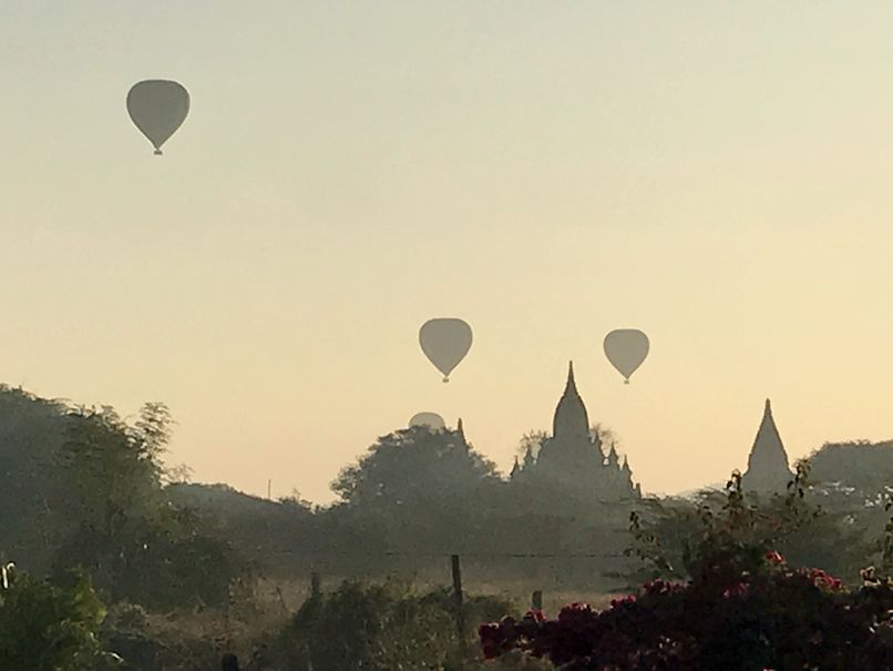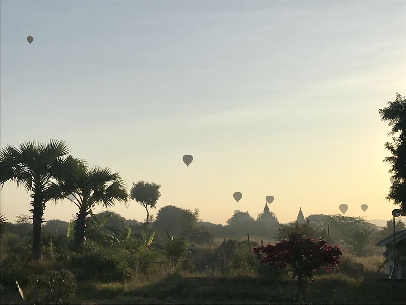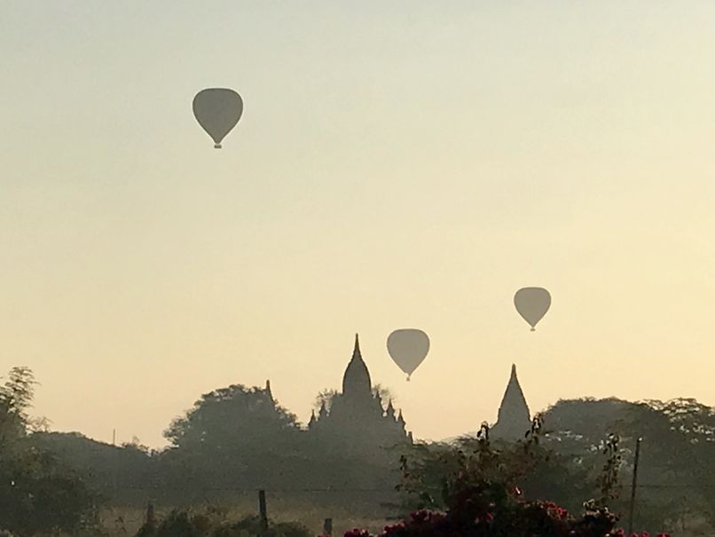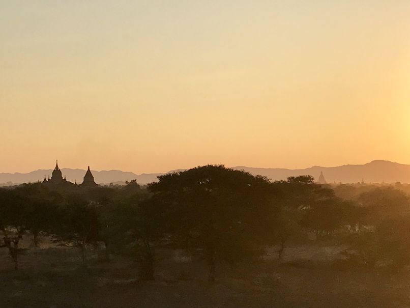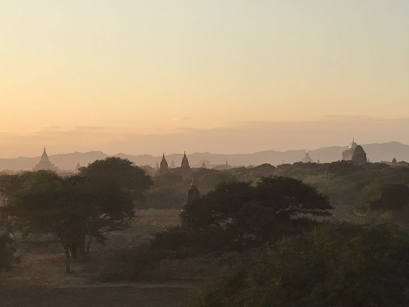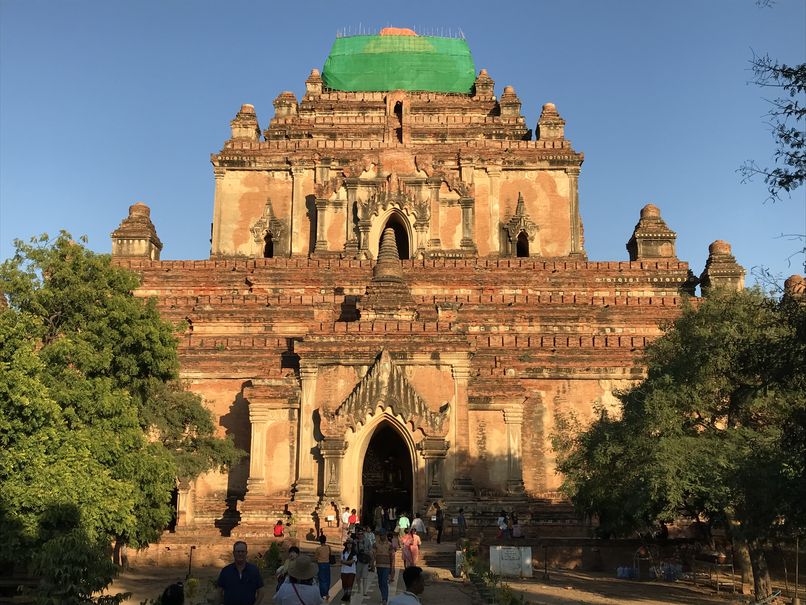 Pour le coucher de soleil, ne rêvez plus … il est désormais interdit de monter sur un temple pour l’admirer. Notamment suite au tremblement de terre de 2016, et aussi pour préserver le site. Le gouvernement local a construit des petites buttes en terre pour prendre un peu de hauteur. La vue est belle mais la magie est cassée par la foule de touristes et de pèlerins concentrés sur une si petite surface pour immortaliser la scène.