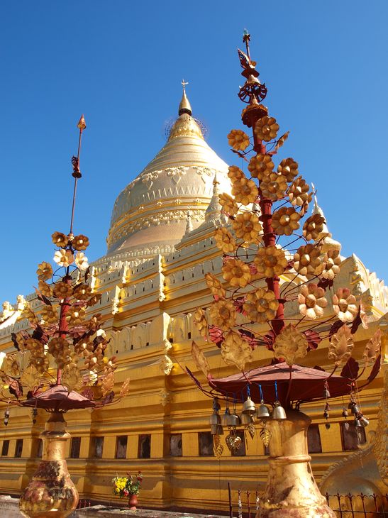 - Shwezigone Pagoda : une des plus riches et des plus vénérées, elle abriterait un os du Bouddha et la réplique de la dent qui se trouve à Kandy au Sri Lanka.