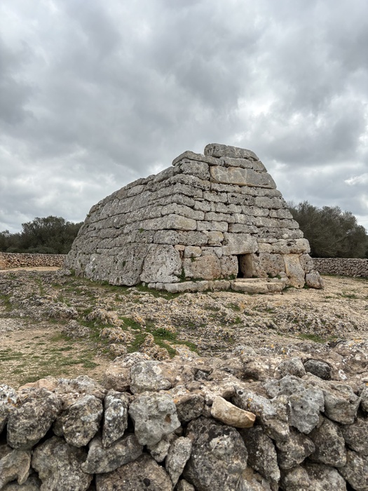 Naveta des Tudons : Ce monument funéraire, en forme de bateau renversé, est le plus ancien édifice d’Europe encore debout (vers 1400–900 av. J.-C.). Unique à Minorque, il servait de tombe collective : la chambre inférieure abritait les ossements, tandis que l’étage supérieur était probablement utilisé pour le séchage des corps. Long de 13,6 mètres, il a été fouillé au XXe siècle, révélant plus de 100 squelettes et des objets personnels. Symbole de la période pré-talayotique, il est classé au patrimoine mondial de l’UNESCO et accessible depuis la route Mahón-Ciutadella.